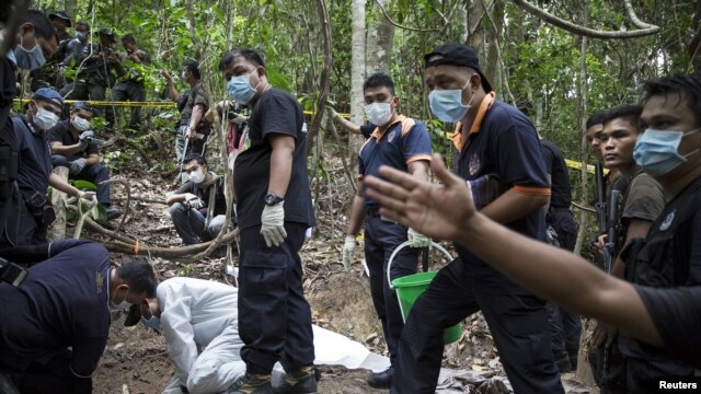 ထိုင္းနယ္စပ္အနီးက ဒီလူသူအေရာက္အေပါက္နည္းတဲ့ေနရာကို တေထာက္နားစခန္းအျဖစ္ လူေမွာင္ခိုကူးသူေတြက အသံုးျပဳခဲ့တာပါ။ အဲဒီေသဆံုးသူေတြထဲက အမ်ားစုဟာ ျမန္မာႏိုင္ငံထြက္ေျပးလာတဲ့ ႐ိုဟင္ဂ်ာေတြ ဒါမွမဟုတ္ ဘဂၤလားေဒ့ရွ္ႏုိင္ငံသားေတြ ျဖစ္ပါတယ္။ ဒီကေန႔ထုတ္ျပန္လိုက္တဲ့ အာဏာပိုင္ေတြရဲ႕ ေၾကညာခ်က္ထဲမွာ လြန္ခဲ့တဲ့သီတင္းပတ္အတြင္းက ႐ုပ္အေလာင္း ၂၄ ေလာင္းကို ရွာေတြ႔တာ ျဖစ္ၿပီး အေစာပိုင္းတုန္းကလည္း ၁၀၆ ေလာင္း ရွာေတြ႔ထားတယ္လုိ႔ ဆိုပါတယ္။ အခုအခါမွာေတာ့ ႐ုပ္အေလာင္းေတြကို ခြဲစိတ္ စစ္ေဆးဖို႔ အတြက္ ပို႔ေဆာင္ထားေပမယ့္ တျခားအေသးစိတ္ကိုေဖၚျပတာမ်ဳိးမရွိပါဘူး။